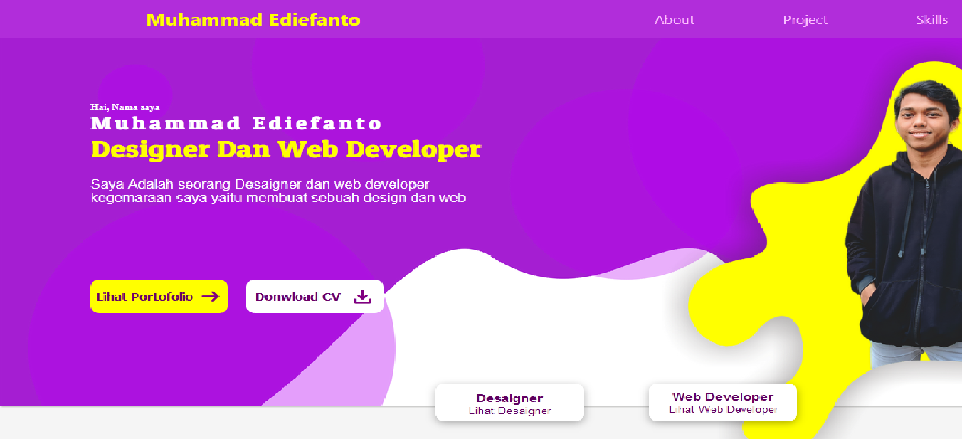 My name is Muhammad Ediefanto . I am a Beck end Developer. Software Engineer Enthusiast. My passion in programming is very high, I like to learn about new technologies. I am still a fresh graduate in the Beck end Developer field, but I have good skills . I have experience and familiarity with HTML, CSS, JavaScript, PHP and frameworks for building web applications such as Laravel and Node Js. I honed my skills by working on projects and taking online courses. I am ready to accept job offers remotely or onsite. I live in Jawa Tengah, Indonesia. I was born in Kudus, 22 Mei 2003 I'm 20 years old. I graduated with a bachelor's degree in informatics engineering at Islam Nahdlatul Ulama Jepara University.